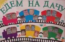 Коллективная работа детей второй младшей группы №2 "Едем на дачу". 31.05.2013 "Мы в вагончиках сидим, мы сидим, мы сидим. И в окошечко глядим, весело глядим. Едет, едет паровоз, чух, чух, чух. Ребятишек он повез, чух, чух, чух...". В ходе работы дети учатся развивать сюжетно - игровой замысел, использовать полученные ранее умения наклеивания готовых форм. самостоятельно располагать предметы на бумаге, дорисовывать части композиции.