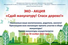 Эко-Акция "Сдай макулатуру - спаси дерево!" "Макулатураны тапшыр! Агачны сакла!" эко-акциясе. 21.11.2022