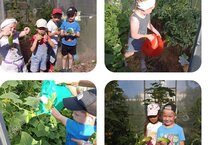 В этом году ребята двух старших групп, решили поработать на опытном участке детского сада. Весной в теплицу были посажены рассады томатов и огурцов. Дети добросовестно ухаживали за растениями и наблюдали за их ростом. Они сами рыхлили землю, поливали, пропалывали сорняки. И вот, овощи выросли, появился первый урожай огурцов!
