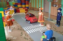 Обучение детей правилам безопасности дорожного движения, по-прежнему, остается одной из важнейших задач дошкольного образования. В первой младшей группе №2 в процессе совместной деятельности педагога с детьми проводились беседы и игровые ситуации "Правила маленького пешехода", "Где должны играть дети?". Дидактические игры "Собери картинку", "Что говорит светофор?", "В автобусе" были направлены на формирование первоначальных навыков поведения на улице и в транспорте, где детям следует играть на улице, чтобы обезопасить свою жизнь, дать представление об улице.