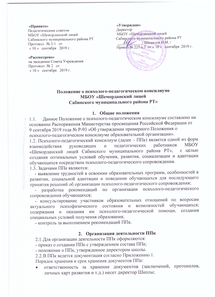 Положение о деятельности психолого-педагогического консилиума