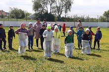 Безнең балалар бакчасында татар халкының олы бәйрәме - Сабантуе узды. Татар халкының сагынып көтеп алынган Сабантуй бәйрәме борынгы һәм яңа бәйрәм, халкыбызның гореф-гадәтләре, йолалары, җырлары һәм биюләре бергә кушылган хезмәт. бәйрәме. Яшь буынны шушы гореф-гадәтләр, йолалар белән таныштыру безнең төп бурычыбыз. Шу вакытта гына бәйрәмебезнең асылы гасырдан-гасырга күчеп, сакланып киләчәк. Көн кояшлы, матур булганлыктан, балаларның күңелләре дә күтәренке иде. Капчык киеп йөгерү, чүлмәк вату, авызга кашык кабып йөгерү, аркан тартышу кебек уеннарда катнашып бүләкләр алдылар.