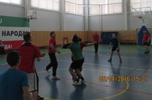 Продолженим спортивного праздника стало соревнование по баскетболу среди команд учителей и учеников.
