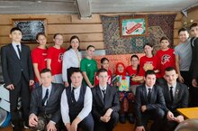 Бәйрәм белән котлап, мәктәбебез егетләре концерт программасы тәкъдим итте.Мәктәп директоры Карамов А. Р., Профсоюз җитәкчесе Фальванова А. Ф. бәйрәм теләкләре җиткерде. -