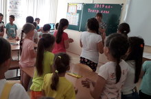 Көнебез иртәнге гимнастикадан башланды. Иртәнге аштан сон Ландыш Әгләмҗановна мавыктыргыч, кызыклы математика иленә сәяхәткә алып барды. Чара укучыларга бик ошады. Кәгазь белән төрле-төрле могҗизалар ясадылар. Көндезге аштан соң, шашка ярышы үткәрелде.