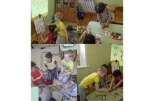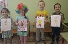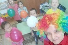 Кисеп ябыштыру эшчәнлегенә клоун килде - балаларга төрле фокуслар күрсәтте. Анары балалар клоунны төрле төстәге кәгазьләр ярдәмендә үзләре кисеп ябыштырдылар.