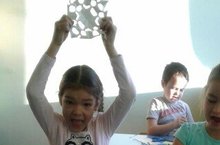 Үзәк аша берничә кат бөкләнгән кәгазьдән кар бөртекләре кисәргә өйрәтү. Квадрат кәгазь битенен якларын һәм почмакларын тәңгәл китереп, төрле юнәлештә пөхтә итеп бөкләү кунекмәсен ныгыту. Кар бөртекләре бизәкләрен үзләре күзаллаганча ясатып, балаларның фантазияләрен устерү.