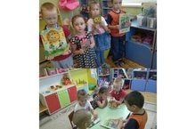 Безнең бакчабызның кечкенә генә библиотекасы. Безнең монда татар һәм рус телләрендәге әкият китаплары.