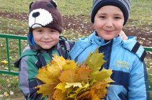 Балалар үзләренең карточкаларына көзге яфраклар, кабак тошләреннән матур рамка ясадылар.