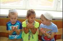 Бүген бакчабызда Корбан итеннән аш пешереп ашадык. Балаларга Алланың барлыгын, берлеген, дини йолаларыбызның саклануы, кирәклеге, изгелек төшенчәләрен тагын бер кат аңлату өчен авылыбызның иң- иң олы ихтирамга лаеклы кешесе- Раушания әби Шамилованы чакырдык. Аның вәгазьләре барыбыз күңелендә дә яхшы уй- теләкләр генә калдырды. Ул балаларның һәрберсенә бисмилла әйттереп: "Акыллы булсам иде, тәүфыйклы булсам иде, әтием- әнием исән- сау булсыннар иде, 7 буын бабаларымның рухлары шат булсын, амин!"- дип әйттереп чыкты. Зур рәхмәт Сезгә Раушания әби!