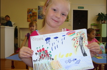 Бүген бакчабызга 28 нче бала булып Елизаветабызның сеңлесе Эльза килде.Ул бик тыныч бала, уенчыклар белән дә уйнап утыра, ятсынмый да.Яшь ярым гына булуына да карамастан ул килүенә беренче генә көн булса да, музыка тавышы ишеткәч "әйләнә- әйләнә" биеп тә алды. Бик тә булган бала буласы Эльзабыз! Апасы да янында булгач аңа тагы да рәхәт, апасы аны бик ярата, кочаклап кына тора.Барысы да исән- сау гына булсыннар)))