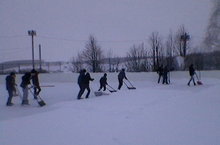 Мәктәптә хоккей мәйданчыгында ирекле шуу һәм уеннар башланып китте. Укытучылар һәм укучылар дәресләрдән соң мәйданчыкны чистарту белән шөгыльләнәләр.