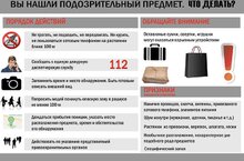 В первую очередь и в обязательном порядке нужно позвонить в полицию по телефону Отдел МВД России по Сабинскому району - 102, 02, 8(84362)2-32-02, или 112.Если предмет обнаружен в транспорте (машине, автобусе, поезде) поставь в известность водителя и кондуктора.