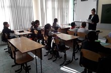 25.02.20 г.ПДН ОМВД России по Сабинскому району РТ сотрудников полиции Р.В.Габдрахмановым и ОПОП Исполнительного комитета СМР РТ А.Р.Исхаковой провели разьяснительную беседу с педагогами и учащимися на тему:"Мошенничество".""Профилактика правонарушений и преступлении, среди несовершеннолетних".
