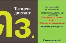 19 октябрь, 13:00Татарча диктант — татар телендә хатасыз язарга өйрәтү, әдәби татар телен кулланучыларның даирәсен арттыру, орфографик һәм грамматик хаталарны тикшерү.