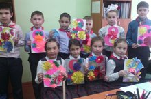 Мәктәбебенең башлангыч сыйныф укучылары бер дә борчылмадылар, әниләргә бүләккә искиткеч матур чәчәк бәйләмнәре ясадылар.