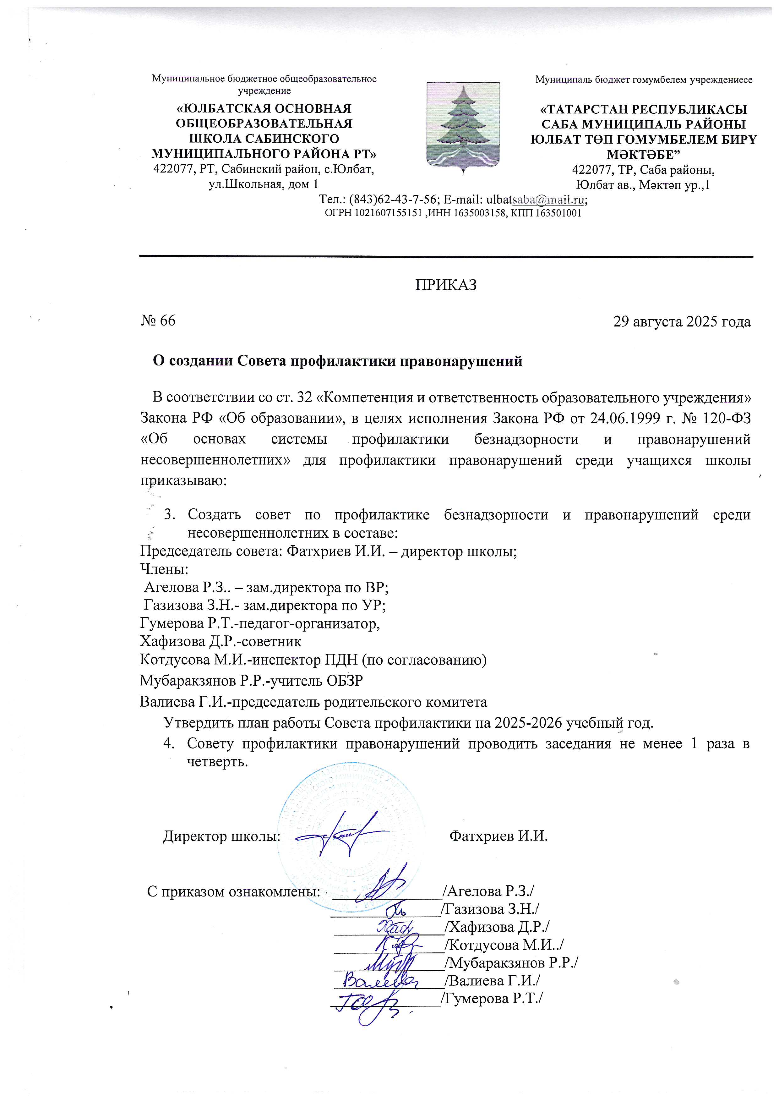 Адрес: 422077, Республика Татарстан, Сабинский муниципальный район, с. Юлбат, ул. Школьная, д. 1