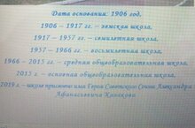 В последние месяцы наш коллектив усердно работал над исследовательской работы на тему: «История нашей школы». Нам удалось выделить периоды истории нашей школы и показать её значимость. В ходе написания исследовательской работы нам удалось пополнить информацию о школе. Мы изучили историю становления и развития школы от ее появления до наших дней, насколько это было возможно. Во-первых, мы собрали и проанализировали материал, имеющийся в школе. Во-вторых, знакомясь с сохранившимися воспоминаниями преподавателей и выпускников школы, удалось восстановить информацию о том, как ученический и педагогический коллектив жили и учились в разное время. В-третьих, нами была восстановлена хронологическая цепочка руководства школой. Мы считаем, что поставленная в данной работе цель нами была достигнута, и стоящие перед нами задачи мы сумели решить.