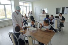рацион питания соответствует утвержденному меню, имеется меню дня, санитарное состояние обеденного зала хорошее, прием пищи осуществляется в соответствии с графиком, качество готовой продукции соответствует нормативным требованиям. -
