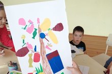 Пятый день пришкольного лагеря "Солнышко" - День леса. Утро началось с поднятием государственных флагов и утренней зарядки на свежем воздухе. Также составляли композиции из природных материалов и играли в подвижные игры.