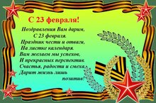 Дорогие наши защитники! Разрешите поздравить Вас с праздником мужества, благородства и чести – С Днём защитника Отечества! И пожелать в этот день крепкого здоровья, неиссякаемой энергии, жизни наполненной миром, счастьем и любовью близких! Уверенно шагайте к высотам успеха и процветания, всегда сохраняя оптимизм, бодрость и душевное равновесие!