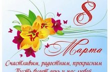 Милые Дамы: наши любимые мамы, бабушки, тети, сестры и сестрички! В этот светлый весенний праздник хочется от всей души поздравить с Международным женский днем и пожелать самых важных и бесценных вещей: здоровья, любви и простого человеческого счастья. Пусть дома всегда царит тепло и уют, пусть близкие и родные всегда будут рядом, пусть жизнь будет полна радости.