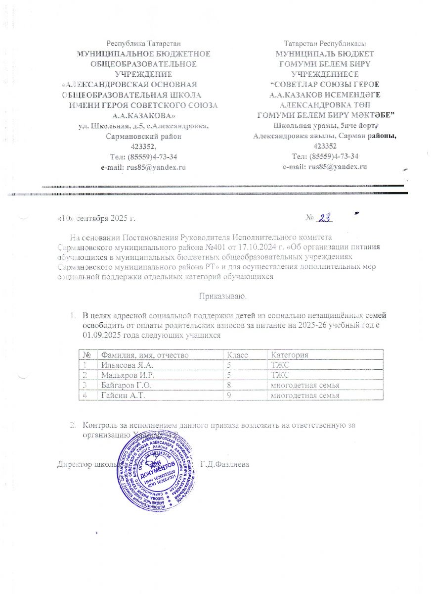 | Адрес: | 423352, Республика Татарстан, Сармановский район, с.Александровка, ул.Школьная, д.5 |