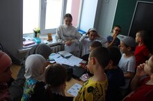 Задания на станциях были разнообразные, на каждой из них команду ожидали старшеклассники, которые координировали младших учеников в выполнении заданий.