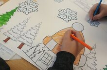 Учащиеся 6 класса совместно с заместителем директора по ВР Кучумовой Д.В. создали плакат с зимней тематикой. Дети собрали композицию из распечатанных рисунков, проявили свою фантазию и разукрасили общую картину.