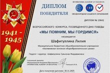 Поздравляем! 02.12.2025 Воспитанница дошкольной группы МБОУ «Азалаковская ООШ» Шафигуллина Лилия стала победителем Всероссийского конкурса, посвященного Дню Победы «Мы помним, мы гордимся» и удостоен диплома победителя! Поздравляем, Лилия!