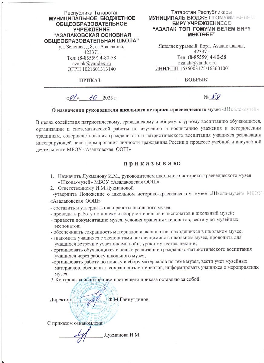 Муниципальное бюджетное общеобразовательное учреждение «Азалаковская основная общеобразовательная школа» Сармановского муниципального района Республики Татарстан / Татарстан Республикасы Сарман муниципаль районы муниципаль бюджет гомуми белем бирү учреждениесе "Азалак төп гомуми белем бирү мәктәбе"