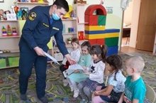Безнең бакчабызда янгынга каршы хезмәт күрсәтү отрядының Зур Нөркәй авылын саклау буенча пост янгын сүндерүчесе Шайгарданов Ринат Рөстәм улы булып китте. Ул балаларга Яңа ел бәйрәме вакытында янгын куркынычсызлык кагыйдәләрен үтәргә, янгын чыккан очракта өйдә үзләрен ничек тотарга, ут, пиротехникалар белән уйнамаска кирәклеген искәртте. \Сегодня наши воспитанники встретились с пожарным противопожарной охраны Отдельного поста по охране с. Большое Нуркеево. Шайгарданов Ринат Рустамович познакомил детей с противопожарными правилами во время Новогодних праздников.