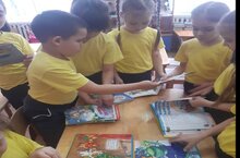 В МБДОУ №1 "Солнышко" отметили международный "День детской книги". В течение дня с детьми провели беседы «Книги — наши лучшие друзья», «Какие бывают книги», «Путешествие в мир книг» в ходе которых ребята закрепили знания о разных жанрах художественной литературы, узнали, как делаются книги. /1 нче санлы "Кояшкай" балалар бакчасында халыкара "Балалар китабы көне" үтте. Көн дәвамында балалар белән «Китаплар — Безнең иң яхшы дусларыбыз», «Китаплар нинди була», «Китаплар дөньясына сәяхәт» темасына әңгәмәләр үткәрелде, алар барышында балалар матур әдәбиятның төрле жанрлары турында белемнәрен ныгыттылар, китапларның ничек ясалуын белделәр.