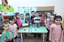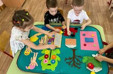 С детьми второй младшей группы воспитатели с помощью «Ковробука» развивают мелкую моторику. Через игру они укрепляют свои знания о временах года, цветах и геометрических фигурах./Тәрбиячеләр икенче кечкенәләр төркеме балалары белән «Ковробук» ярдәмендә вак моториканы үстерәләр. Уен аша алар ел фасыллары,төсләр,геометрик фигуралар турында белемнәрен ныгыталар