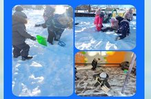 Уртанчылар төркеме Гөлфинә Алмасовна белән рәхәтләнеп тышта кар корәп,уйнап, күңел ачып керделәр/ Средняя группа с удовольствием поиграли и поработали на участке детского сада вместе с Гульфиной Алмасовной
