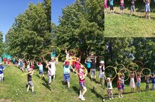 Сегодня в день мяча все группы на участках играли с мячами: подбрасывали, отбивали, передавали. Также провели игры "Поймай-подбрось", "Охотники и зайцы", "Бадминтон" . "Футбол" и.т.д