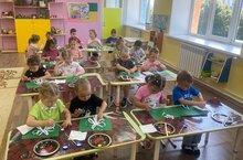 Зурлар төркеме балалары Россия көненә багышлап әңгәмә үткәрделәр. Дәуләт символлары: флаг,герб,гимн нәрсә аңлатканын,кайда һәм ничек кулланырга кирәклеген, Россия дәүләтендә төрле милләтләр яшәгәне турында сөйләштеләр. Нәтиҗә ясап Россия флагын кисеп ябыштырдылар./ В старшей группе дети беседовали о символиках :флаге, гербе, гимне и в завершении нарисовали флаг России.