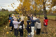 Букет ясап куярбыз.Беренче кечкенәләр төркемендә тәрбияләнүче балалар рәсем шөгылендә көге яфраклар сурәтләделәр.