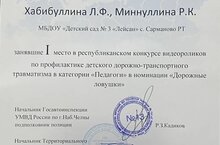 В детском саду N82 “Подсолнушек» г.Набережные Челны,ГБУ «Научный центр безопасности жизнедеятельности Академии наук РТ»; Управление образования ИК МО; Отдел профилактики ТУ ГБУ «Безопасность дорожного движения» ; ФГБОУ ВО «НГПУ» провели Республиканский научно-методический семинар практикум для педагогов ДОО на тему «Совместные проекты ДОУ и семьи по формированию навыков безопасного поведения на дороге». Наши воспитанники средней группы Ахмадишин Реваль, Миргасимов Раян, Нариманов Айгиз под руководством воспитателей Хабибуллиной Лилии Федоровны,Миннуллиной Рушании Камилевны приняли участие в конкурсе видеороликов и заняли почетное 1 место в номинации «Дорожные ловушки».Поздравляем и желаем дальнейших побед.