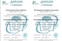 Наши воспитатели Фасхутдинова Гульфина Алмасовна. Калимуллина Флюза Рифовна стали участниками V Всероссийского конкурса профессионального мастерства среди педагогов, воспитателей "Современные образовательные технологии" и стали дипломантами 1 степени/Безнең тәрбиячеләр Фәсхетдинова Гөлфинә Алмас кызы. Кәлимуллина Флүзә Риф кызы педагоглар, тәрбиячеләр арасында "заманча белем бирү технологияләре" V Бөтенроссия һөнәри осталык конкурсында катнашып 1 дәрәҗәле дипломант булдылар 23.04.2021