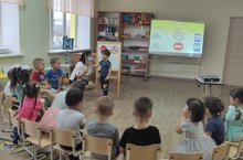 Икенче кечкенәләр төркемендә Люция Рафаэловна балалар белән сөйләмне үстерү буенча ачык дәрес үткәрде. Алар әкият дөньясына чумдылар, анда геройларының нинди сыйфатларга ия булуын һәм һәр Әкияттә яхшылык явызлыкны җиңә алуын билгеләделәр.
