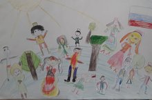 Коллективная работа воспитанников старшей группы на тему "Россия - наш общий дом" // "Рәсәй - күмәк йортыбыз" темасына зурлар төркемендә тәрбияләнүче балаларның күмәк эше 11.06.2019