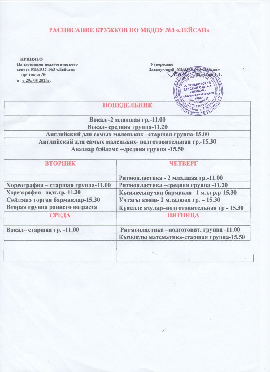 Расписание дополнительный занятий