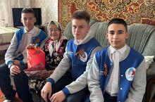 1 нче санлы Җәлил мәктәбенең Җиңү волонтерлары сугышны кичергән кешеләргә бүләкләр тапшыралар.