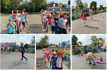 Сегодня, 10 августа в нашем детском саду прошли спортивные соревнования «Радуга спорта». На спортивню площадку посоревноваться в ловкости, быстроте, выносливости, а также получить заряд положительных эмоций вышли две команды «Апельсин» и «Дубравушка». Ребята участвовали в спортивных эстафетах Девчонки и мальчишки получили много положительных эмоций и впечатлений. Самое главное, что унесли команды с собой, – это хорошее настроение и заряд бодрости на целый день. / Бүген, 10 август көнне безнең балалар бакчасында «спорт Салават күпере»спорт ярышлары булып узды. Спорт мәйданчыгына җитезлектә, тизлектә, чыдамлыкта ярышырга, шулай ук уңай эмоцияләр алырга ике «әфлисун» һәм «Дубравушка»командалары чыкты. Балалар спорт эстафеталарында катнаштылар, малайлар һәм кызлар бик күп уңай эмоцияләр һәм тәэсирләр алдылар. Иң мөһиме, командаларны үзләре белән алып киттеләр,бу-яхшы кәеф һәм көн буена күтәренке кәеф.