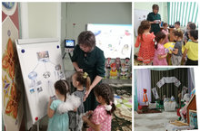 Дети любят не только «читать» сказки, но и «показывать» их. Ребята с большим удовольствием пели, играли, перевоплощались в того или иного персонажа сказок, переживая происходящие в них события, борясь со злом и всегда проявляя готовность прийти на помощь слабому /Балалар әкиятләрне "укырга" гына түгел, ә аларны "күрсәтергә" ярата. Балалар бик теләп җырладылар, уйнадылар, төрле әкият персонажлары белән аралаштылар, аларда булган вакыйгаларны кичерделәр, явызлык белән көрәштеләр һәм һәрвакыт йомшак кешеләргә ярдәмгә килергә әзер булуларын күрсәттеләр -