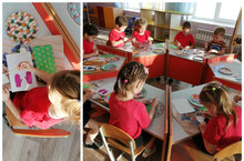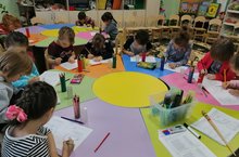 Рисование в первой младшей группе 17.11.2020Рисование — самый популярный среди детей вид изобразительной деятельности, в ходе которого с помощью красящих материалов создаются изображения окружающей действительности. Оно знакомит детей с окружающим миром, формирует эстетический вкус, развивает креативность.Дети младшей группы украшали платье для куклы./ Рәсем-рәсем ясау-рәсем ясау эшчәнлегенең иң популяр төре, аның барышында буяу материаллары ярдәмендә әйләнә-тирә чынбарлыкның сурәтләре барлыкка килә. Ул балаларны әйләнә-тирә дөнья белән таныштыра, эстетик зәвык формалаштыра, креативлыкны үстерә. Кече төркем балалары курчаклар өчен күлмәк бизәделәр.