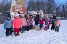 Дети старшей группы возложили цветы к памятнику воинам, погибшим во время Великой Отечественной войны.