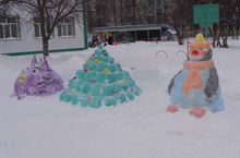 Для создания праздничной атмосферы педагоги ДОУ слепили сказочных героев на территории детского сада. Теперь каждое утро встречают детей Дедушка Мороз и Снегурочка, а на групповых участках Смешарики и ледяные горки.