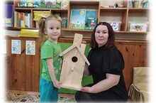 Мингазетдинова Диляра, воспитанница старшей группы МБДОУ №3 “Алёнушка” вместе с семьёй участвует в экологической акции "Каждому скворцу-по дворцу!".